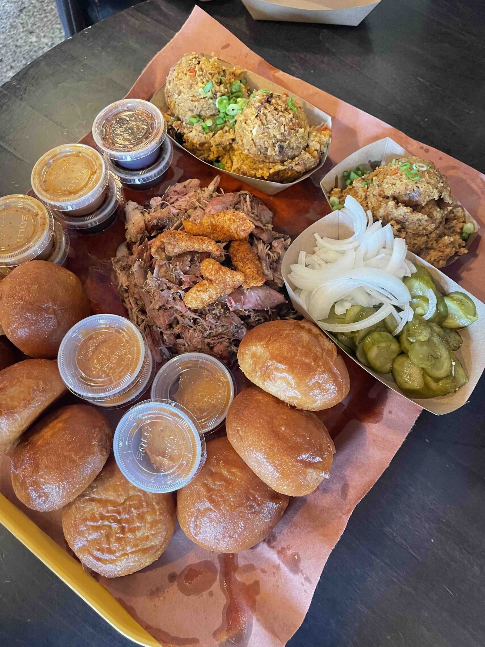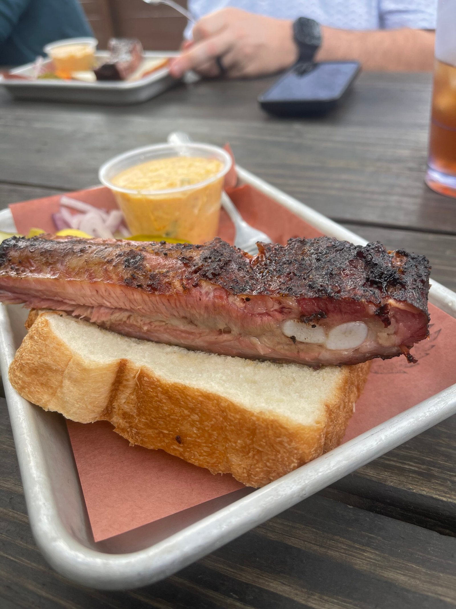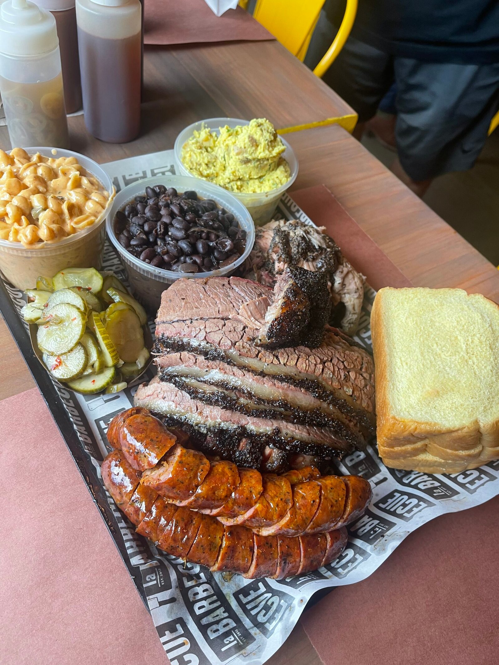 the eats: Beef rib, brisket, spare ribs, sausage, turkey and whatever sides you feel