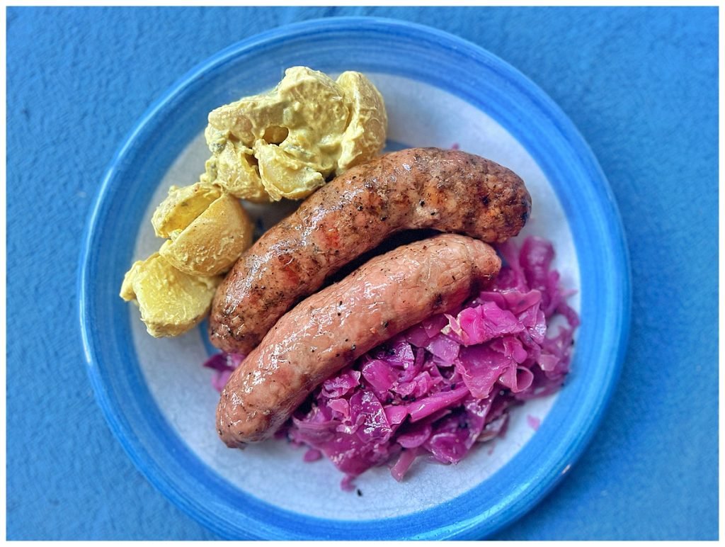 - Start with quality. You’re not hiding behind beer here — you’re elevating. Go for precooked artisan or butcher-made brats, kielbasa, or smoked sausages. I highly recommend Schaller and Weber.