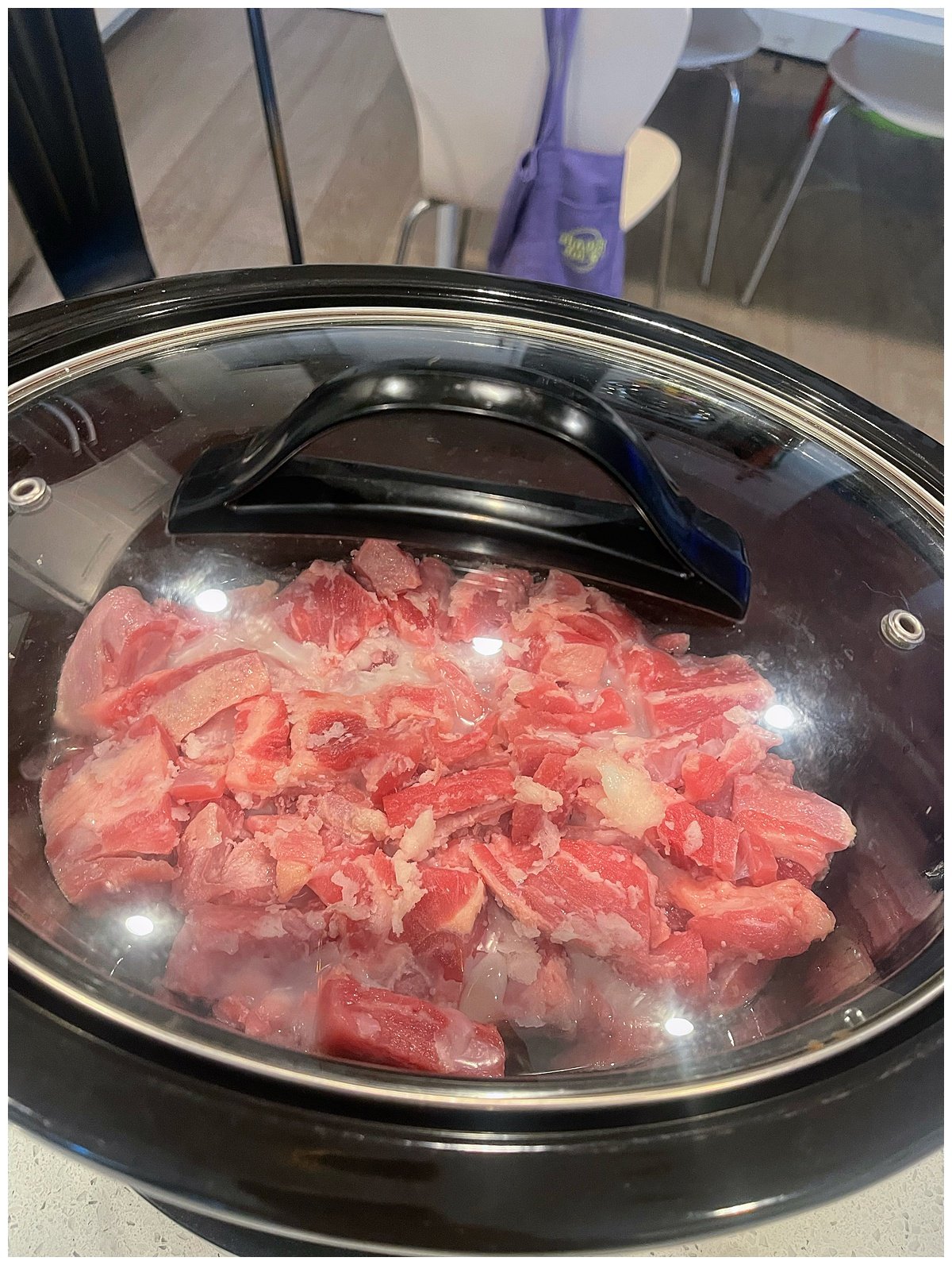 - Prep the meat: Cut the suadero into roughly 2-inch cubes (or large chunks).