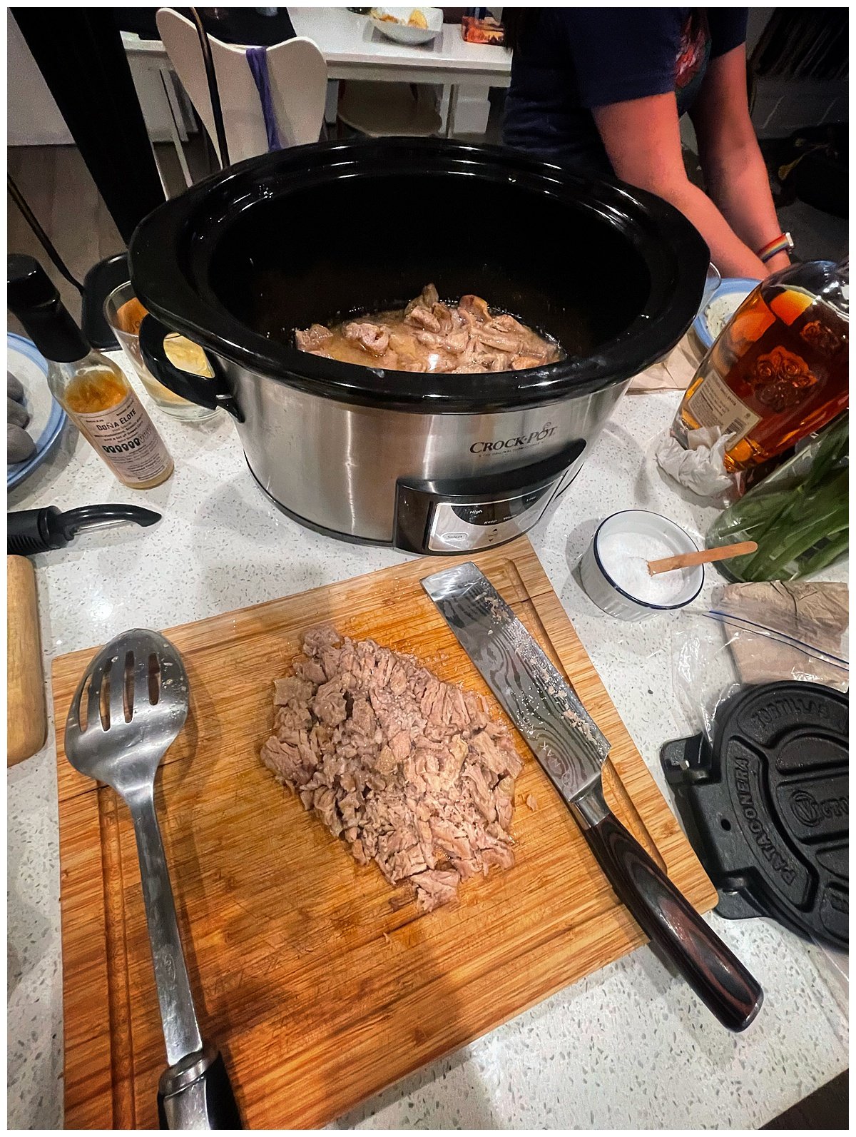- Once tender, remove and chop: Take the meat out (let excess fat drip off) and place on a cutting board. Chop into pieces a little smaller than ½-inch — some will fall apart, which is fine and even desirable.