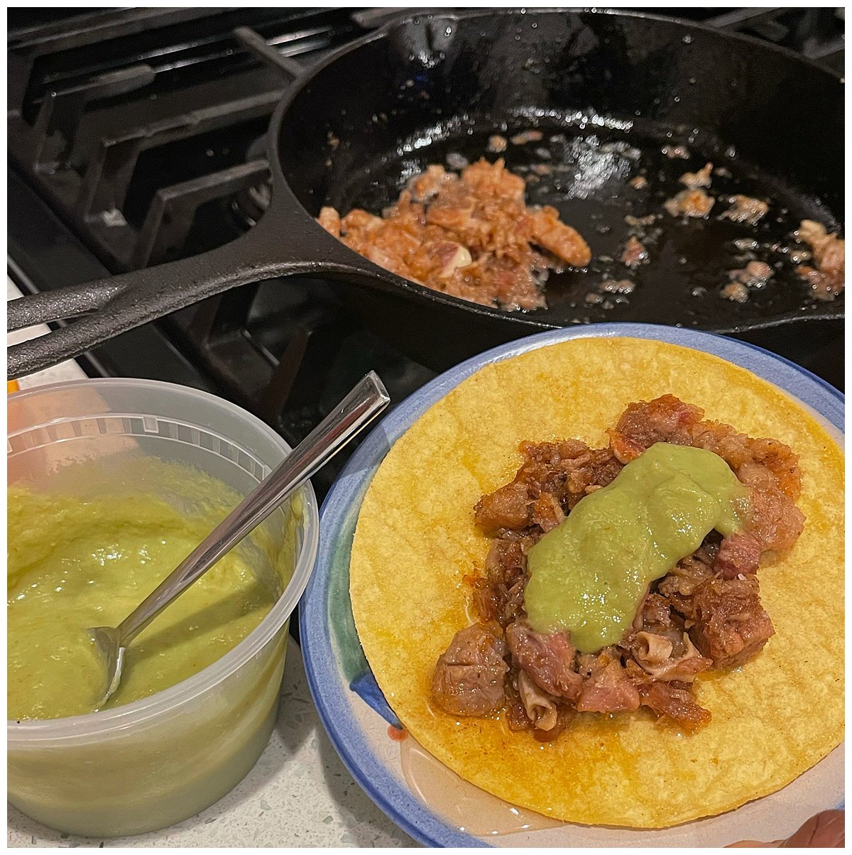 - Make-ahead trick: You could do the slow-cook step ahead of time (even the day before), refrigerate the fat + meat, then crisp right before serving. That makes taco time easier.